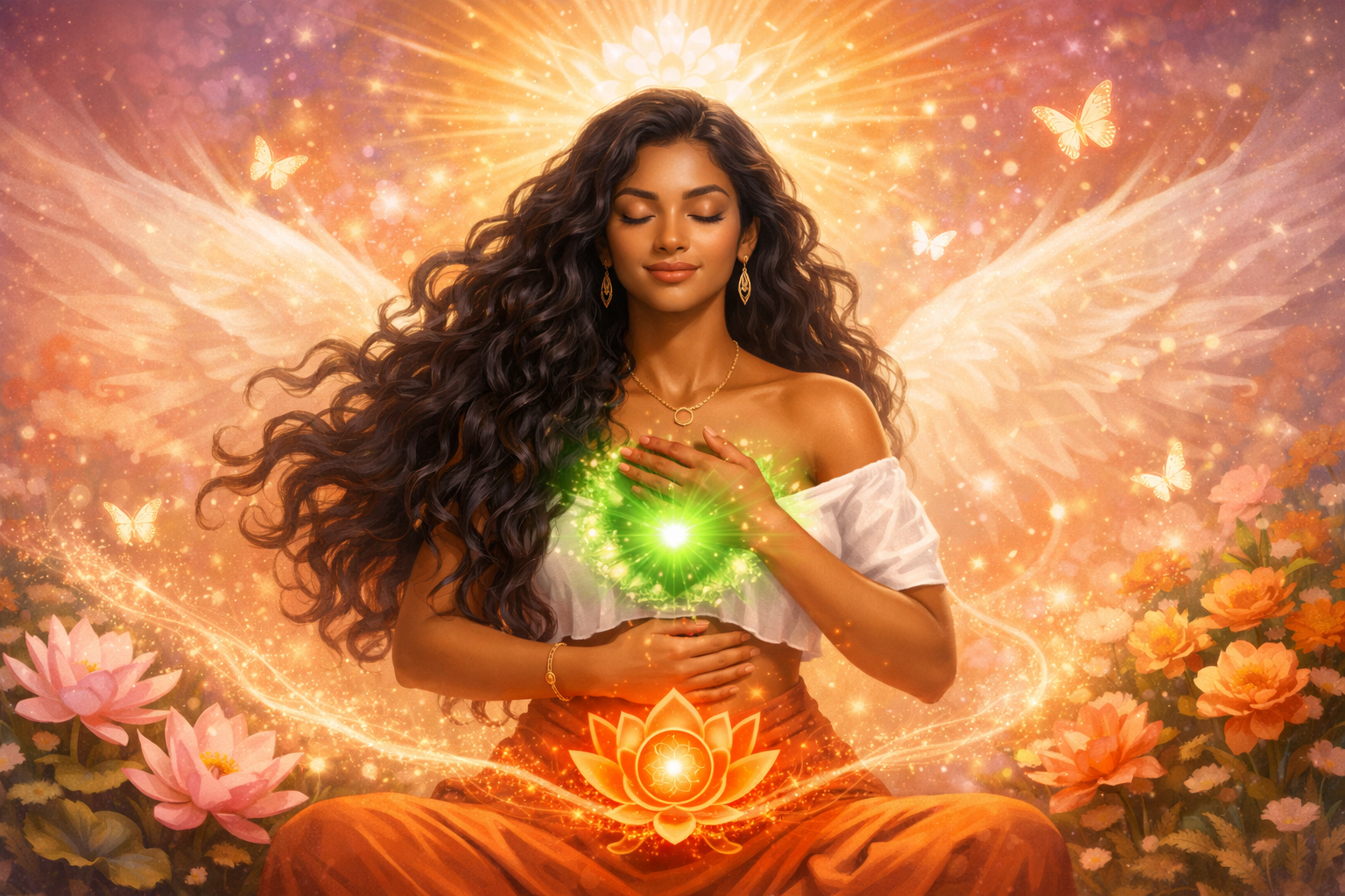 Voordat we deze energetische activatie starten, is het waardevol om even stil te staan bij de samenwerking tussen twee belangrijke energiecentra in jouw lichaam: het sacraal chakra en het hartchakra. Het sacraal chakra, gelegen in je onderbuik, is het centrum van gevoel, creativiteit, levensenergie en emotionele stroming. Hier leven jouw verlangens, jouw sensaties en jouw vermogen om diep te voelen. Het hartchakra, in het midden van je borst, is het centrum van liefde, compassie, verbinding en waarheid. Wanneer deze twee energiecentra met elkaar samenwerken, ontstaat er een prachtige balans.